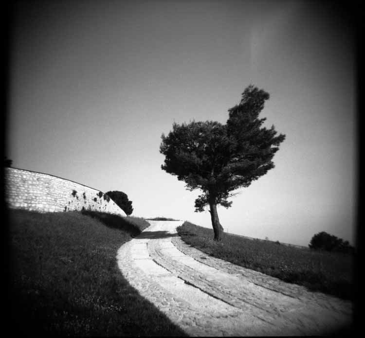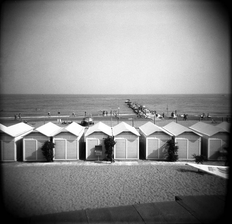 La scelta è caduta sulla piccola Holga, una fotocamera tutta di plastica, obiettivo compreso, nata in Cina negli anni ’60, pellicole 120, con un solo tempo di scatto e con due soli diaframmi, con lo scopo quasi esclusivo di consentire alla classe operaia e contadina di riprendere le proprie scene domestiche, le proprie cerimonie, i propri eventi familiari. Quasi il massimo della banalità ripetuta in serie.